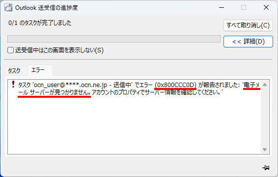Microsoft 365で、エラーメッセージ[電子メール サーバーが見つかりません。]が表示された場合の対処方法をご案内します。