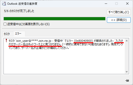 Microsoft 365で、エラーメッセージ[入力されたサーバー名はネットワーク上に見つかりません。(エラー番号:0x80040900)]が表示された場合の対処方法をご案内します。