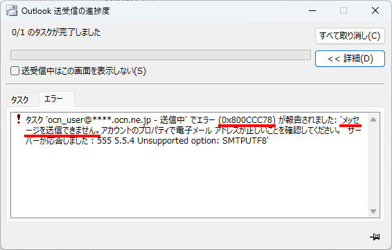 Microsoft 365で、エラーメッセージ[メッセージを送信できません。(エラー番号:0x800CCC78)]が表示された場合の対処方法をご案内します。