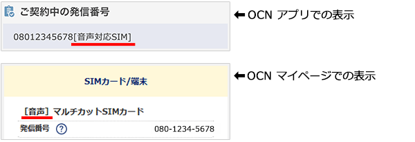 OCN アプリやマイページ、OCN会員登録証などを確認し、お申込みいただいたのが「音声対応SIMカード」で間違いないことをご確認ください。