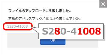 [ファイルのアップロードに失敗しました。対象のアドレスブックが見つかりませんでした。 S280-41008]