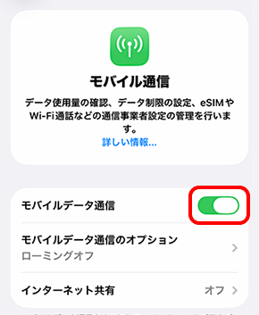 モバイルデータ通信のON/OFFを行う