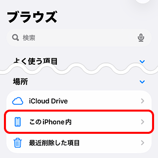 ※ 以降の手順は[このiPhone内]をダウンロードファイルの保存場所としている場合の例です。