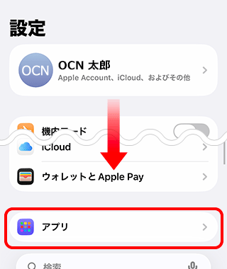 [設定]画面で下にスクロールし、[アプリ]をタップします。