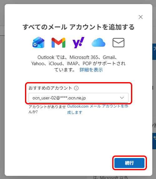 Outlook for Windowsに、OCNのメールアドレスをIMAPで追加設定する方法をご案内します。