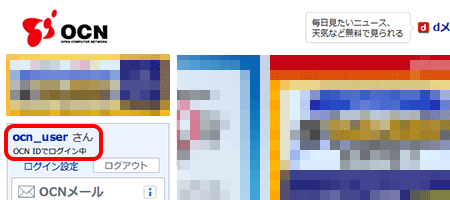 ログイン履歴を確認するOCN IDでログインしているか確認し、違う場合や[dアカウントでログイン中]となっている場合は、ログインし直してください。