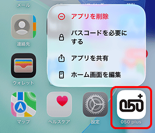 「050 plus」アプリをiPhoneやiPadからアンインストールする方法をご案内します。