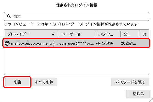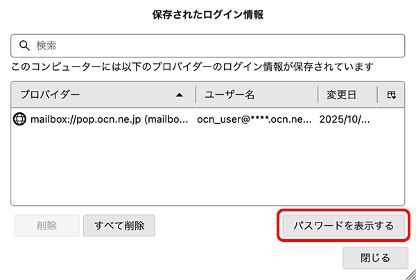 MacのThunderbird 143で、POPで設定したOCNのメールパスワードを変更する方法をご案内します。