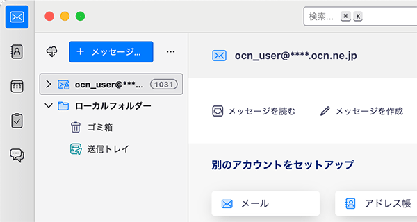 ※ このメールソフトに設定しているアカウントを削除すると、受信したメールなどのデータが削除されてしまいますのでご注意ください。