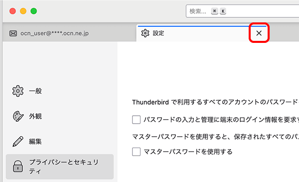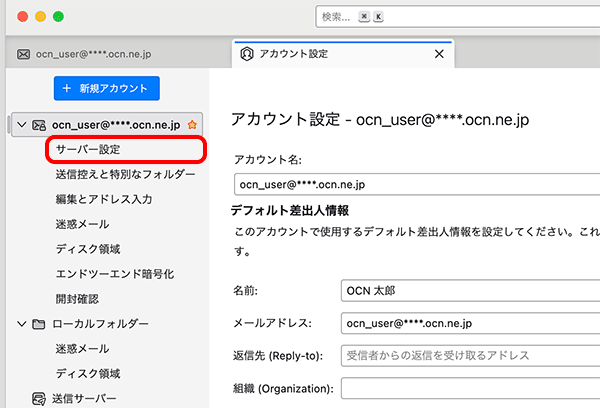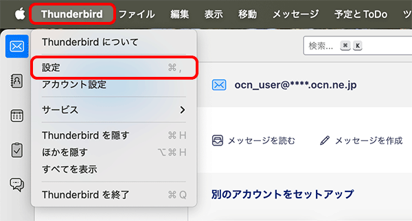 MacのThunderbird 143で、OCNのメールアドレスの設定(POP)が正しいか確認する方法をご案内します。