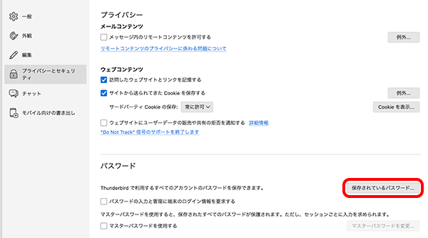 Thunderbirdに保存されているパスワードが正しいか確認する方法をご案内します。