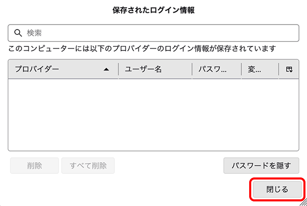 ※ パスワードが保存されていない場合や、誤りがない場合は次の手順へお進みください。
