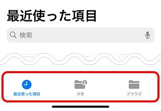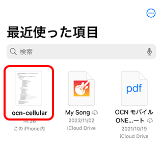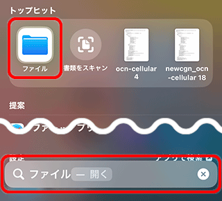 検索欄に[ファイル]と入力し、検索結果の[ファイル]をタップします。