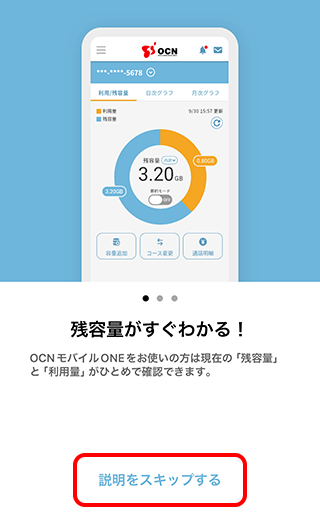 OCN アプリから節約モードの切り替えや通信容量の確認がしたい場合