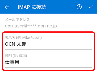 説明 | アカウントの一覧に表示したい名称を入力 例)「OCN」「仕事用」など |