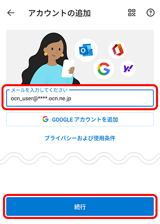Android 16でOutlookアプリを使う場合に、OCNのメールアドレスを新しくIMAPで設定する方法をご案内します。