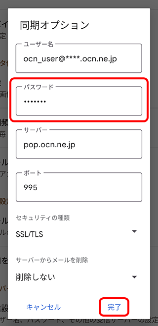 Android 16のGmailアプリに、POPで設定したOCNのメールパスワードを変更する方法をご案内します。