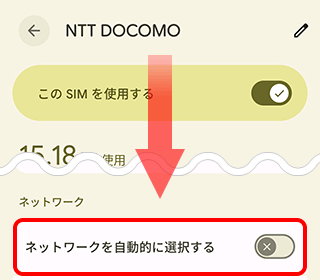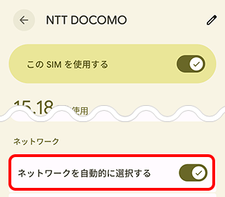 ON]にします。※[詳細設定]をタップすると[ネットワークを自動的に選択]が表示される機種もあります。