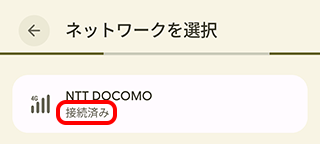 ※[接続済み]と表示されない場合は[NTT DOCOMO]をタップし、[接続済み]と表示されるかご確認ください。