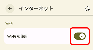 [Wi-Fi]右のスイッチを入れ直してください。それでも[接続済み]にならない場合は、以下の手順でWi-Fi設定をやり直してください。
