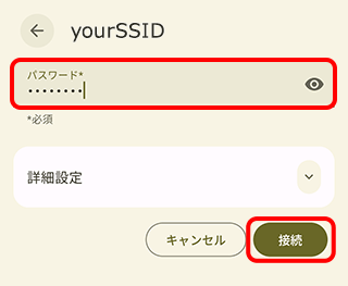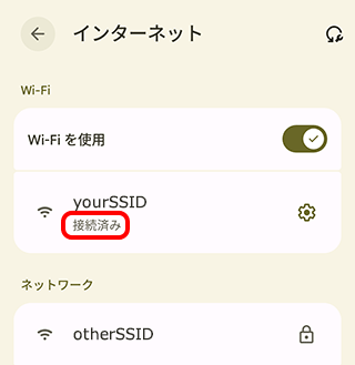 ※ 以降の手順は[yourSSID]というSSIDに接続する場合の例です。