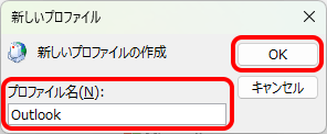 メールアドレスを設定する[プロファイル名]を選択し、[OK]をクリックします。