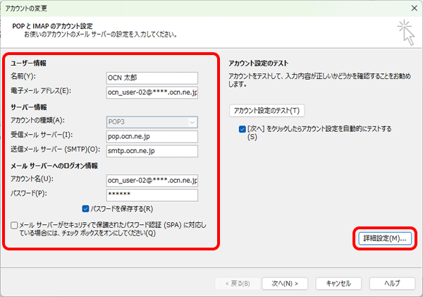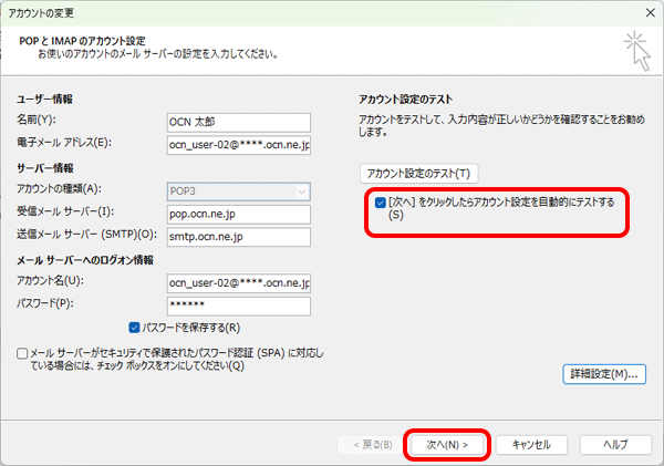 pop.ocn.ne.jp と入力 |