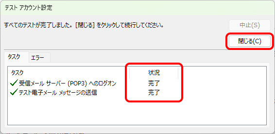 [POP3]と表示されていることを確認 |