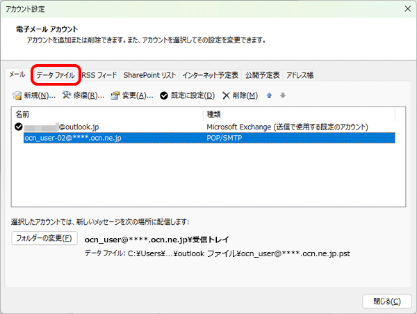 Outlook 2024で、POPで設定したOCNのメールアドレスを変更する方法をご案内します。