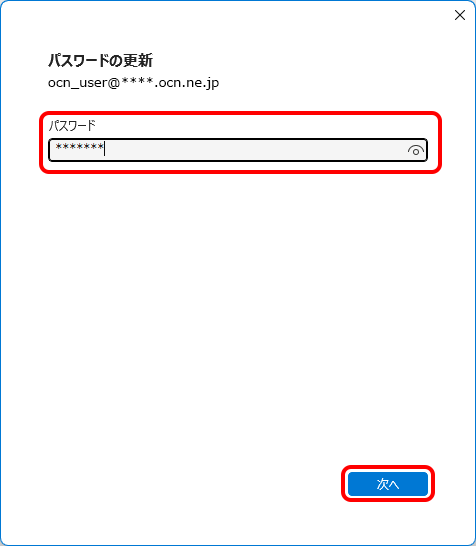 ※[ 表示]をクリックすると、入力したパスワードが確認できます。