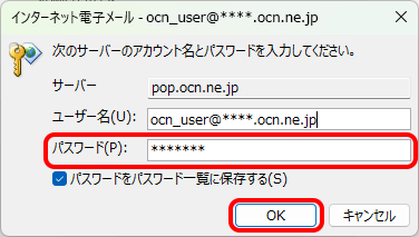 [パスワード]を確認して正しく入力し、[OK]をクリックして次のSTEPに進みます。