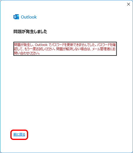 [前に戻る]をクリックして[パスワードの更新]画面に戻り、再度設定してください。