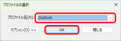 メールアドレスを設定する[プロファイル名]を選択し、[OK]をクリックします。
