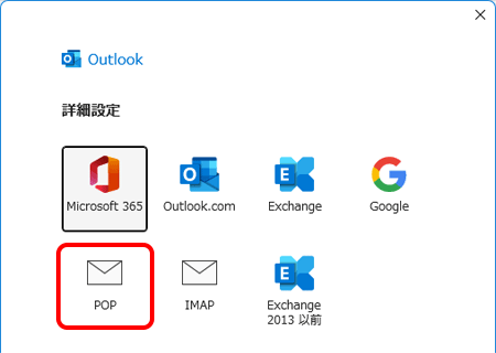 ※ POPとIMAPの違いや特徴はこちらをご参照ください。