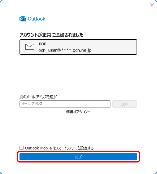 Outlook 2024に、OCNのメールアドレスをPOPで追加設定する方法をご案内します。