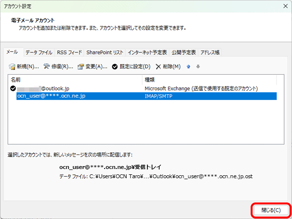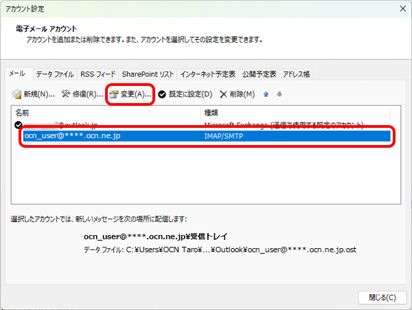 Outlook 2024で、IMAPで設定したOCNのメールパスワードを変更する方法をご案内します。