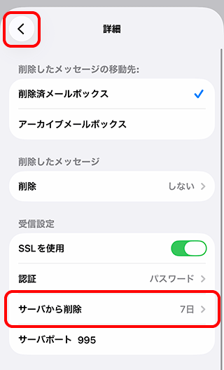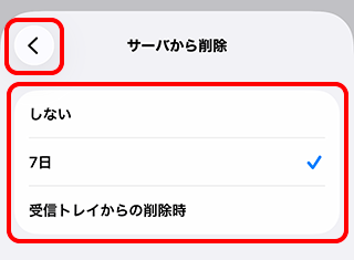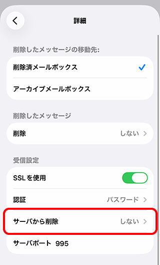 メールアプリから削除したメールはサーバーからも削除されるため、このページの設定は不要です。
