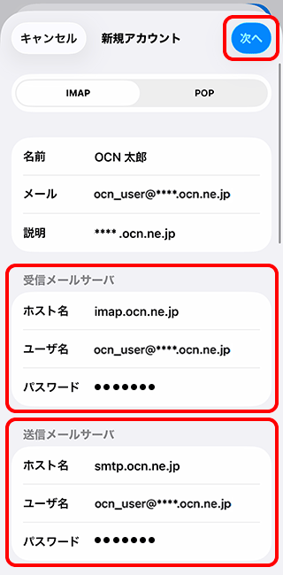 imap.ocn.ne.jp と入力 |