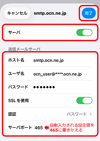 smtp.ocn.ne.jp と入力 |