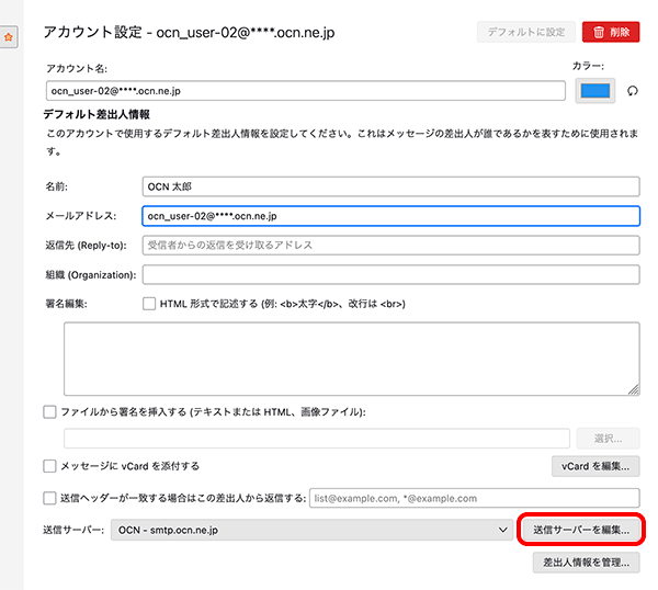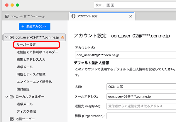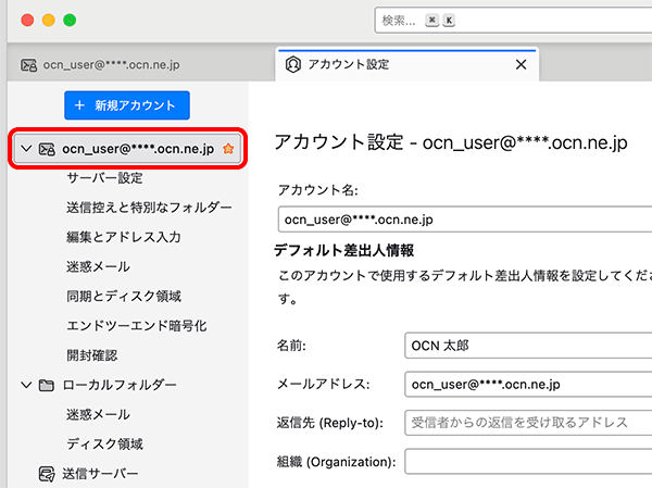MacのThunderbird 143で、IMAPで設定したOCNのメールアドレスを変更する方法をご案内します。