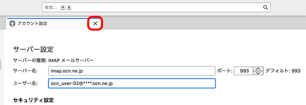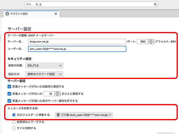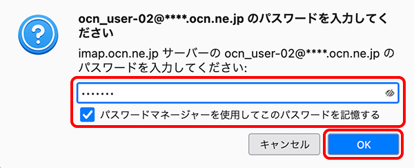 | サーバー名 | imap.ocn.ne.jp と入力 |