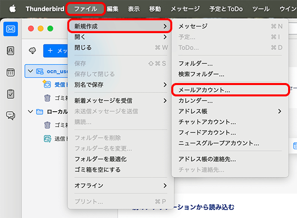 MacのThunderbird 143で、OCNのメールアドレスをIMAPで追加設定する方法をご案内します。