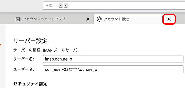 | ホスト名 | 自動入力される設定値を imap.ocn.ne.jp に書きかえる |
