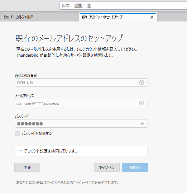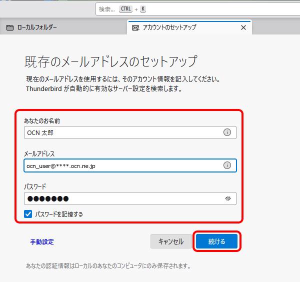 OCNのメールアドレスをWindowsのThunderbird 143に、POPで新しく設定する方法をご案内します。