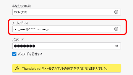 [Thunderbird がメールアカウントの設定を見つけられませんでした。]と表示される場合