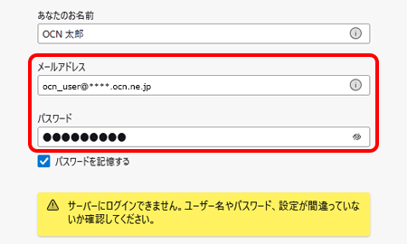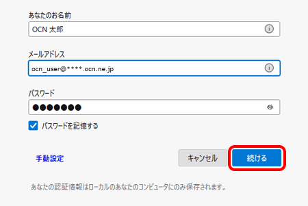 | パスワードを記憶する | メールパスワードを保存する場合はチェックする |
