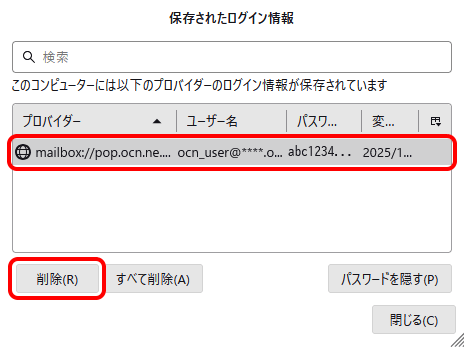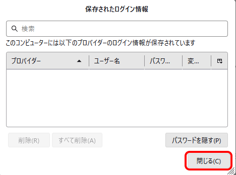 ※ パスワードが保存されていない場合や、誤りがない場合は次の手順へお進みください。