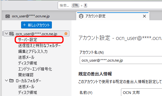 ※この設定を行うと、サーバーから削除されたメールはOCNメール(Webメール)では確認できなくなります。