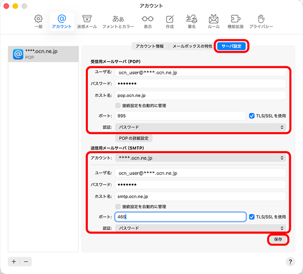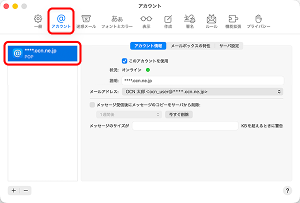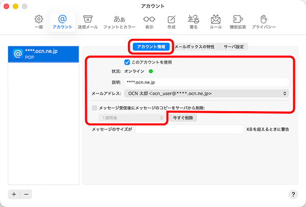 macOS TahoeでOCNのメールアドレスの設定(POP)が正しいか確認する方法をご案内します。