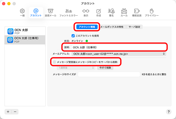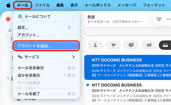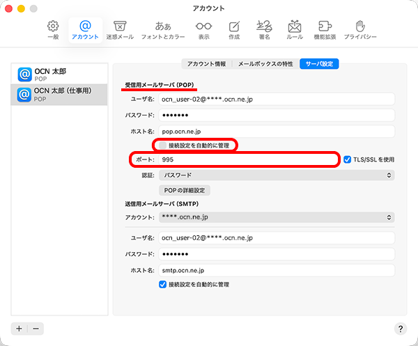macOS TahoeにOCNのメールアドレスをPOPで追加設定する方法をご案内します。